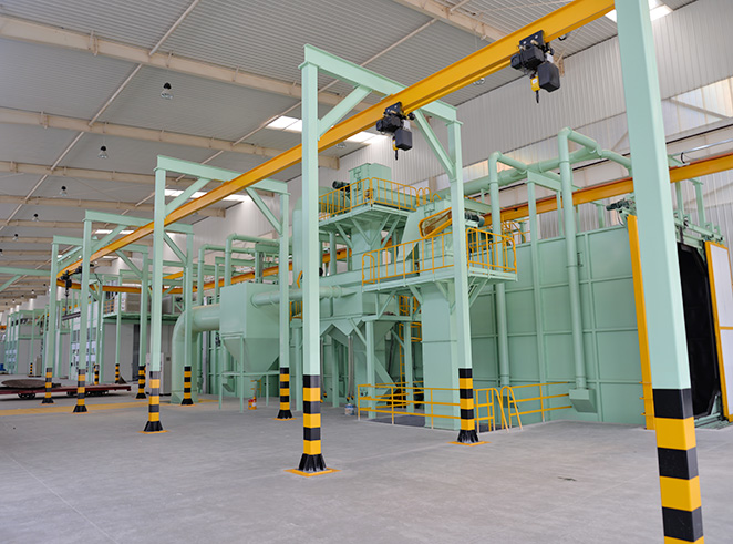 配備了大功率光纖激光切割機(jī)、自動焊接機(jī)器人、國內(nèi)大規(guī)模的旋流器拋丸除銹噴漆流水線等國內(nèi)先進(jìn)的加工設(shè)備和生產(chǎn)線,實現(xiàn)了下料、機(jī)加、焊接、除銹、噴漆等先進(jìn)的自動化加工流程,全面保障了產(chǎn)品質(zhì)量及生產(chǎn)效率。